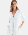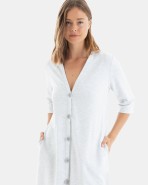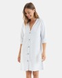 Bata de dona de teixit pelfa cotó, tanca amb botons davanters, màniga francesa i butxaques laterals