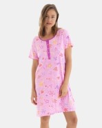 Camisola de dona de teixit punt cotó - viscosa estampat, màniga curta amb espatlla caiguda, tapeta davantera amb botons i escot rodó