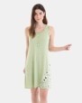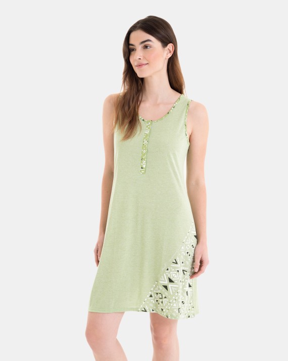 Camisola de dona de teixit punt cotó llis, estampat posicional, sense màniga, tapeta davantera amb botons i escot rodó