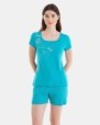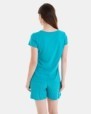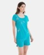 Pijama de dona en teixit de punt cotó - modal, composta per samarreta amb mànigues, estampat posicional en davanter, escot semi quadrat i pantalons curts en teixit estampat amb goma i cordó ajustable a la cintura
