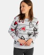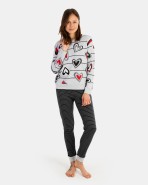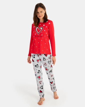Pijama de dona, compost per samarreta estampada amb puny i baix de canalé en contrast. Pantalons teixit estampat amb puny en contrast de canalé i goma a la cintura