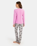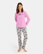 Pijama de dona, compost per samarreta en tundosat amb gràfic estampat al davanter, màniga llarga i coll rodó. Pantalons llargs a Jacquard punt milà amb dibuix teixit all over