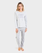 Pijama de dona compost per samarreta màniga llarga i coll rodó. Pantalons llargs amb cintura ajustable.