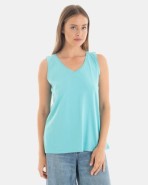 Samarreta bàsica de dona sense mànigues en teixit de cotó 100%.