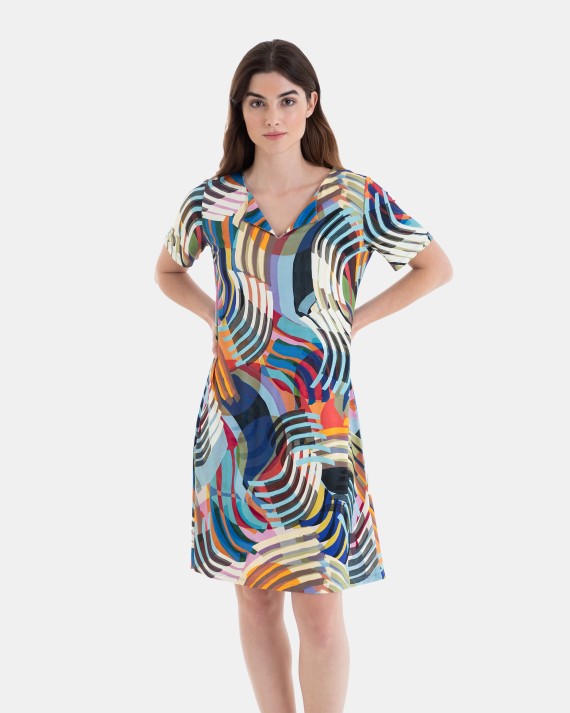 Vestit de platja curt de màniga curta estampat multicolor