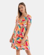Vestit de dona de teixit punt viscosa estampat, amb màniga amb peça independent en escot tipus collaret i tapeta