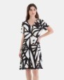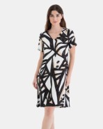 Vestit de dona de teixit plana viscosa estampat, amb màniga i escot en "V"