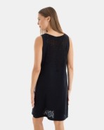 • Vestit de platja curt sense mànigues en teixit calat en color negre
