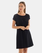 Vestit de dona de teixit punt cotó - modal amb disseny calat a la part superior davantera, sense mànigues amb espatlla caiguda i escot rodó