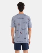 Pijama home en teixit de punt compost per samarreta estampat all over de màniga curta i coll de tapeta amb botons. Pantalons curts llis amb goma ajustable a la cintura .
