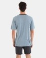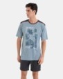 Pijama home en teixit de punt compost per samarreta estampat palmeres de màniga curta i coll rodó amb tira. Peça a contrast a les espatlles. Pantalons curts llis amb goma ajustable a la cintura .