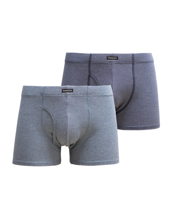 Pack of two striped knit boxers in blue and gray tones, with opening. Massana elastic with a very soft and pleasant touch.