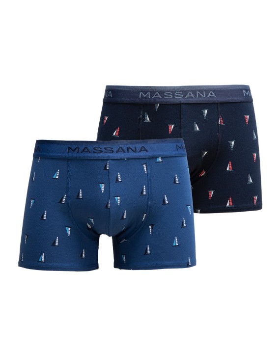 Pack of two knitted boxers in blue tones with a ship print. Massana elastic with a very soft and pleasant touch.