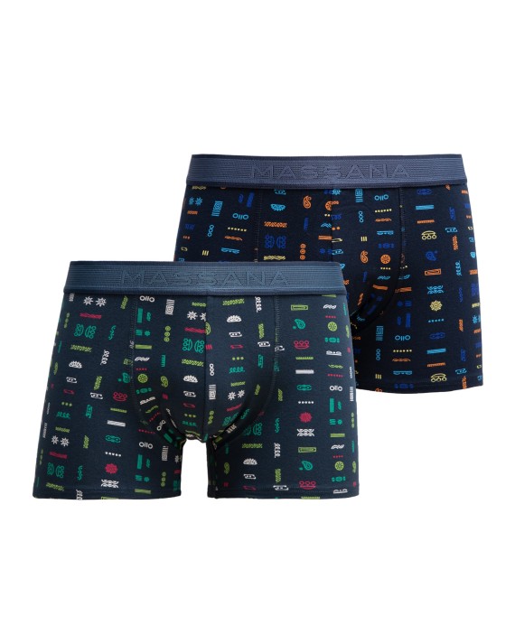 Pack of two knitted boxers in blue tones with ethnic print. Massana elastic with a very soft and pleasant touch.