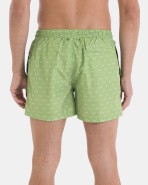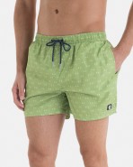 Men’s quick-dry swimsuit with micro-print on a green background. With side pockets, a back pocket with zipper closure, and adjustable elastic waistband with drawstring.