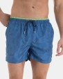 Men’s quick-dry swimsuit with ethnic print and contrasting waistband. With side pockets, a back pocket with velcro closure, and adjustable elastic waistband with drawstring.