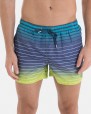 Men’s quick-dry swimsuit with stripes in blue, white, and green. With side pockets and adjustable elastic waistband with drawstring.