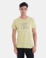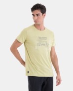 Men's T-shirt in soft cotton-viscose blend knit fabric, front print, short sleeves, and a round collar.
