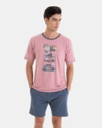 Men’s short pajama in 100% cotton fabric, with a short-sleeve t-shirt featuring a round collar and a van print. Plain shorts with an adjustable waistband and side pockets.