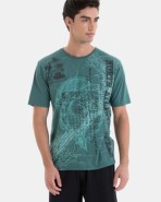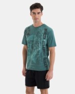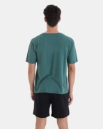 Men’s pajama in 100% cotton knit fabric, consisting of a multi-print short-sleeve t-shirt with a round collar and a contrasting collar strip, with matching pants. Plain shorts with an adjustable waistband.