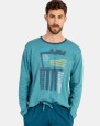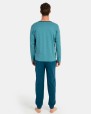 100% cotton knit pyjamas. Composed of a long-sleeved blue T-shirt with a round neck and a centered print. Long blue trousers, finished with cuffs, adjustable drawstring and two side pockets.