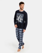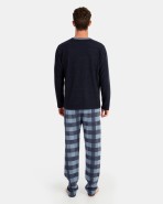 Pyjamas in Milan knit fabric. Composed of a jersey-type T-shirt, long sleeves and round neck with a motif on the chest. Pants also in Milan knit fabric, blue checks with elastic waist.