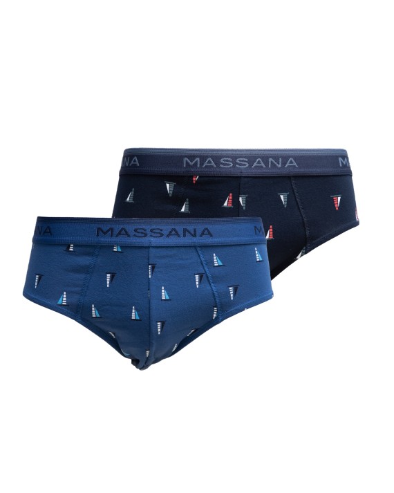 Pack of two knitted briefs in blue tones with a ship print. Massana elastic with a very soft and pleasant touch.
