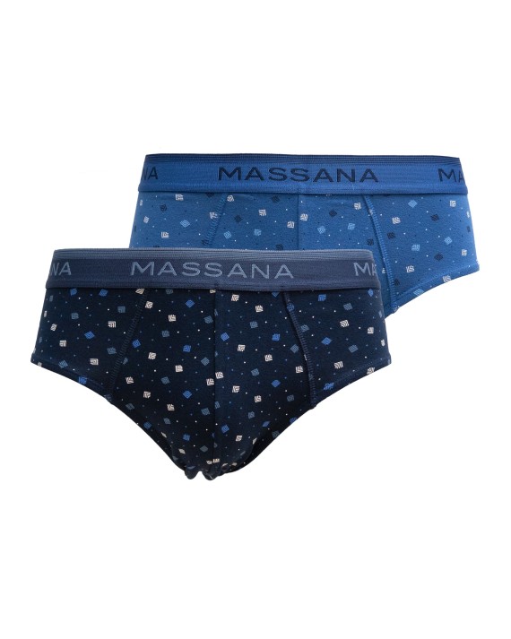 Pack de dos slips de punto en tonos azules con estampado corbatero. Goma elástica de Massana.