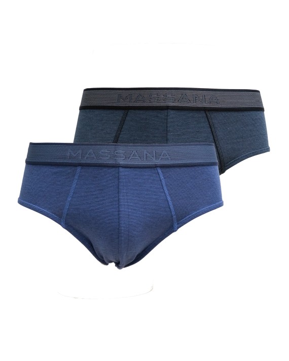 Pack de dos slips de punto listado en tonos azules. Goma elástica de Massana.