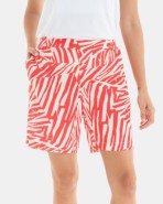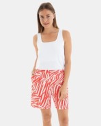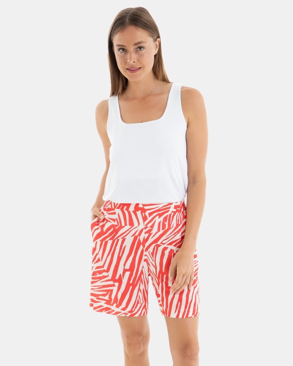 Women’s wide Bermuda shorts made from plain viscose fabric. With side pockets and an elastic waistband.