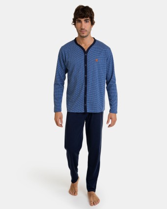 • Pijama corto de hombre abierto de punto en color marino