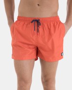 Bañador hombre en tejido de secado rápido, color naranja liso. Tiene dos bolsillos laterales y uno detrás con cierre velcro y goma elástica ajustable con cordón.